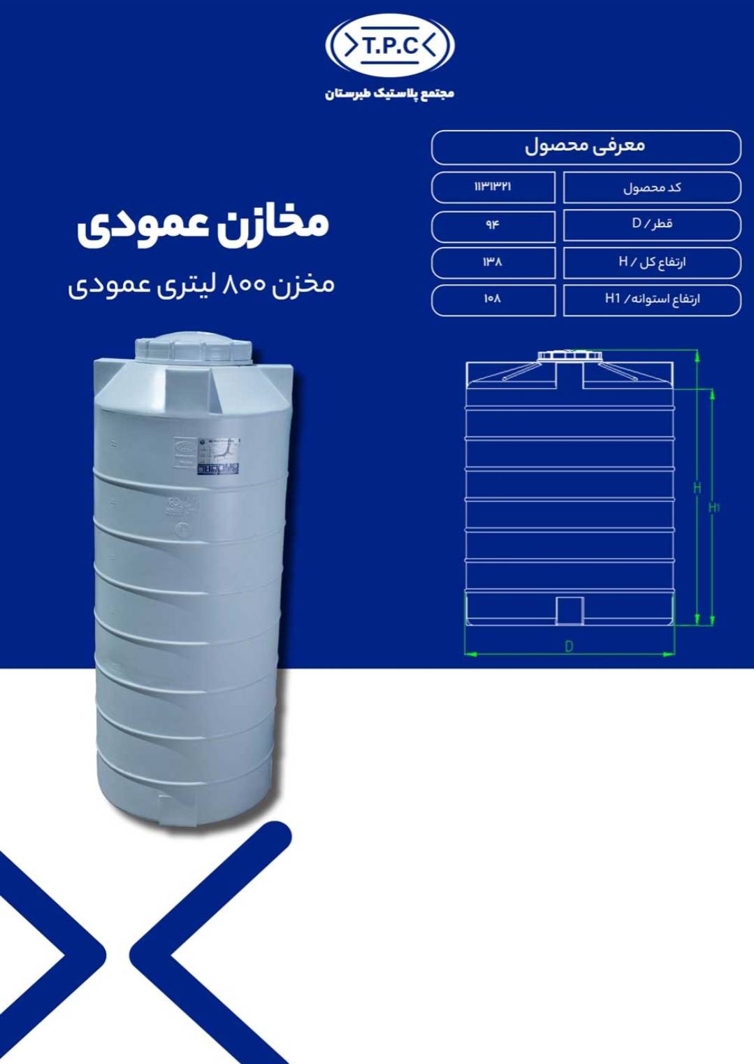 مخزن ۸۰۰ لیتری عمودی طبرستان یکی از بهترین گزینهها برای ذخیرهسازی آب در محیطهای مسکونی، اداری و تجاری است.
