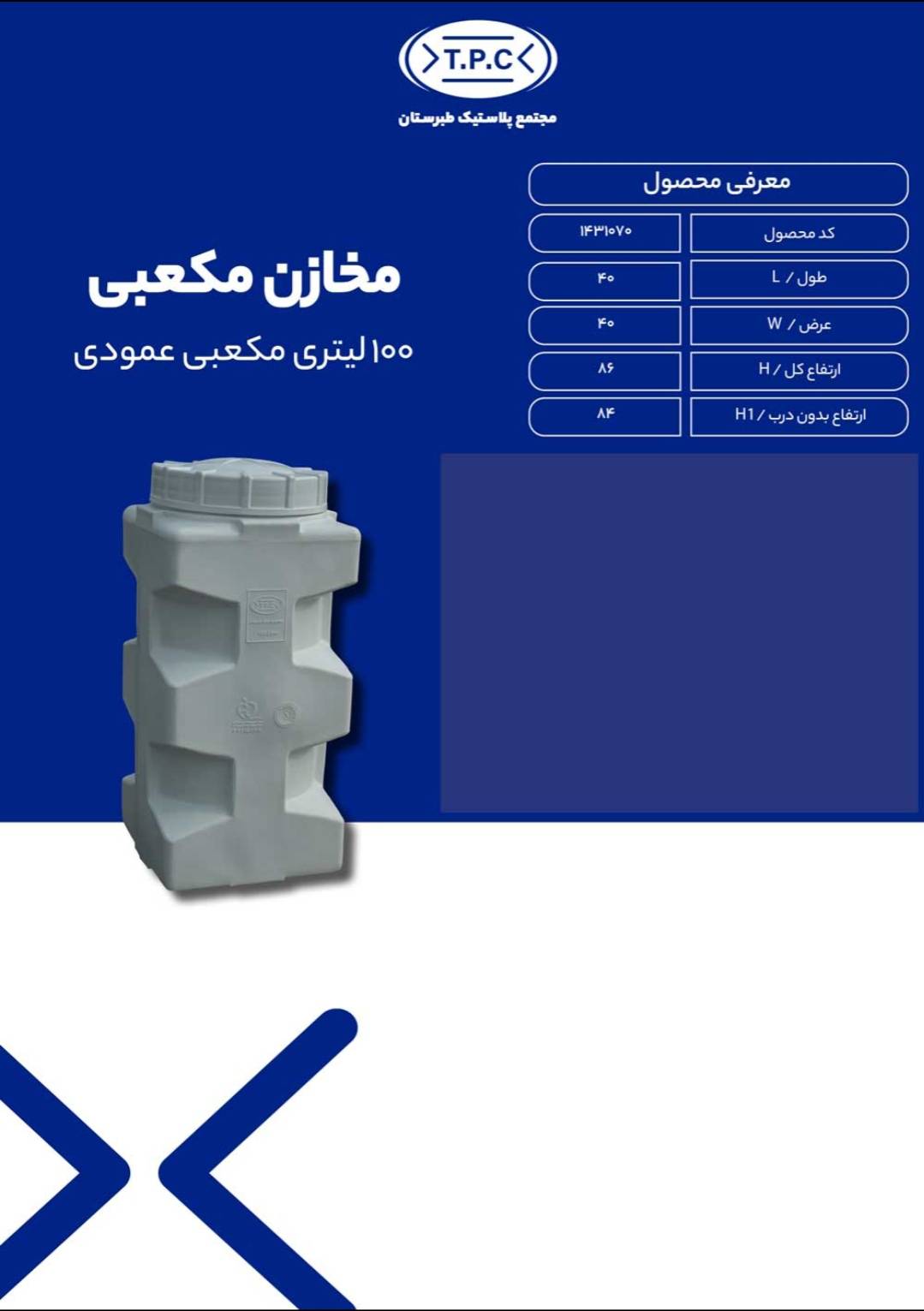 مخزن 100 لیتری مکعبی عمودی در بسیاری از کاربردها قابل استفاده است: