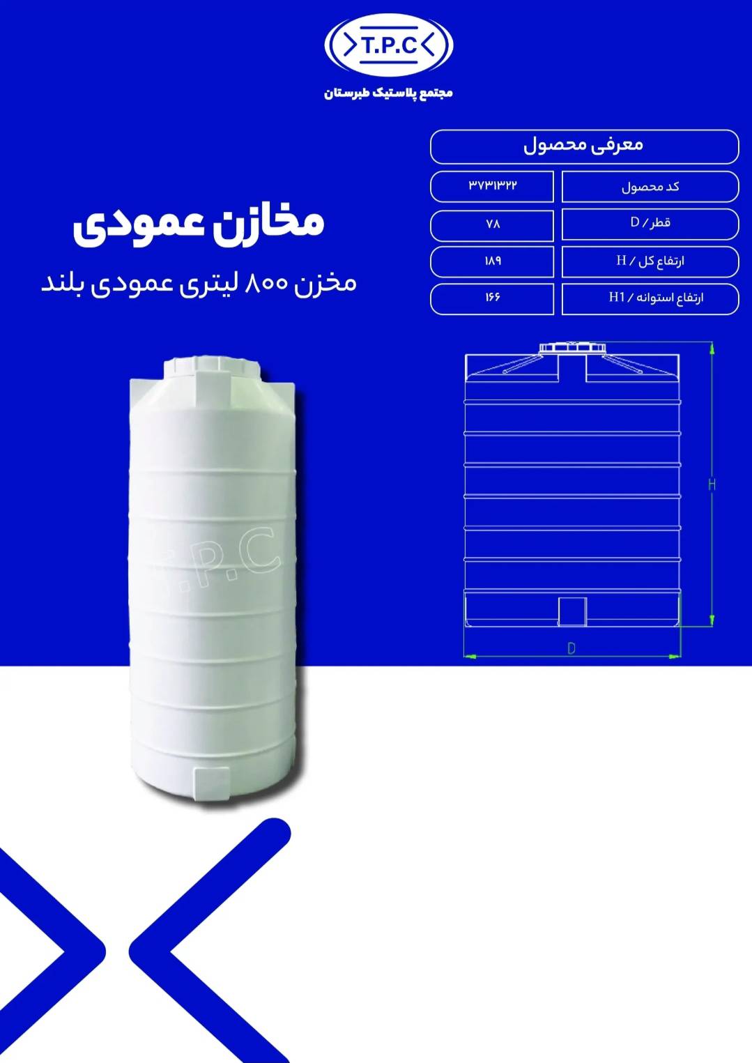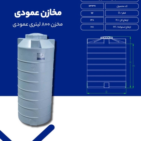 مخزن 800 لیتری عمودی بلند یک راه حل موثر برای ذخیرهسازی مایعات در فضاهای با ارتفاع کافی است. برای اطلاعات بیشتر و سفارش، با ما تماس بگیرید.